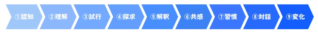 認知 → 理解 → 納得 → 試行 → 定着 → 共有 → 変容